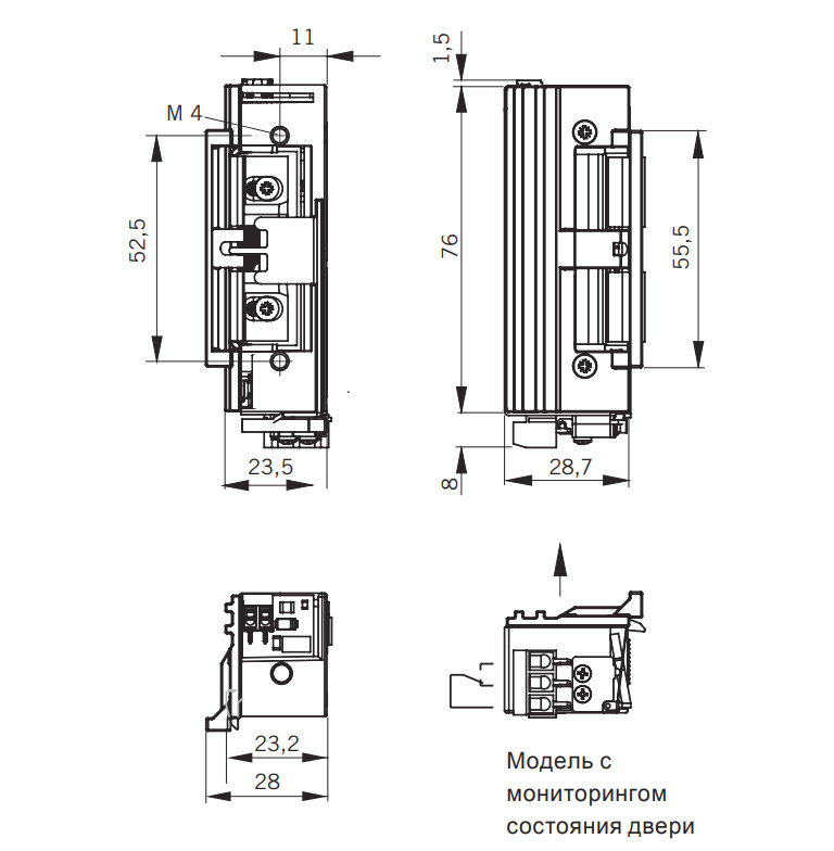Плавающий контакт контролирует положение косого ригеля механического замка, формируя сигналы («Дверь открыта» / «Дверь закрыта»).