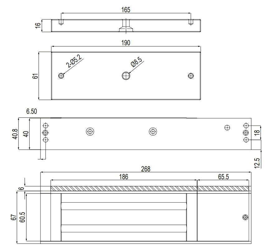 • Размеры корпуса магнита: 268 Д x 73 Ш x 40 В мм