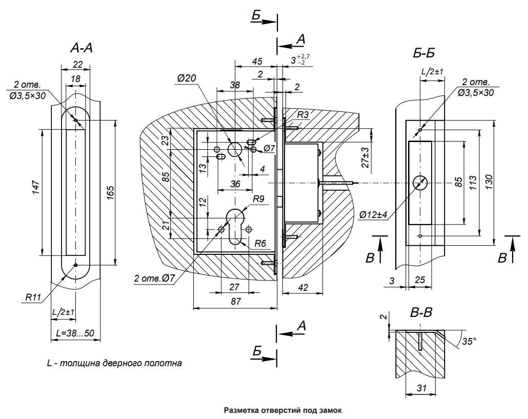 • Расстояние от центра ручки до центра механизма секретности, мм: 85