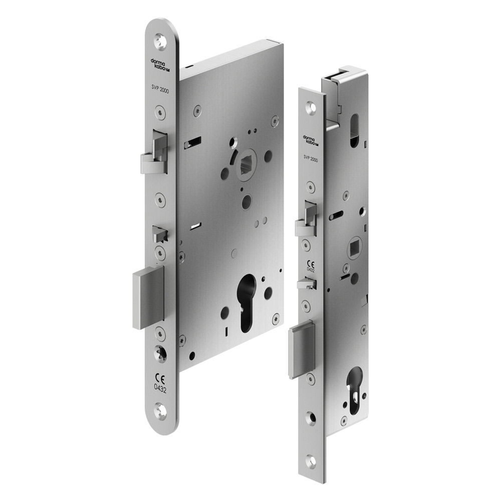 Замки SVP имеются в продаже в вариантах исполнения для дверей из цельного полотна с выбранным по краю пазом или без него, а также дверей с профильными рамами и могут гибко применяться благодаря универсальной управляемой защелке, отвечающей стандартам DIN. Они допущены как замки для аварийных выходов для дверей в эвакуационных путях и для при применения на противопожарных и дымозащитных дверях.