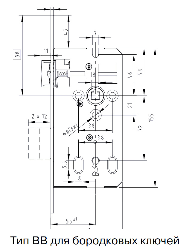• BB - Стандартный бородковый ключ общей длиной 80 мм
