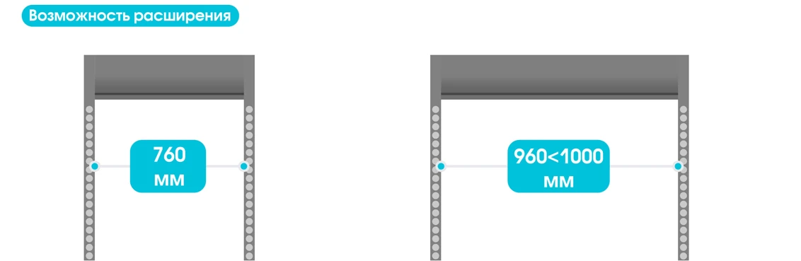 - Ширина прохода: 760 мм (до 880 мм при опции расширения)