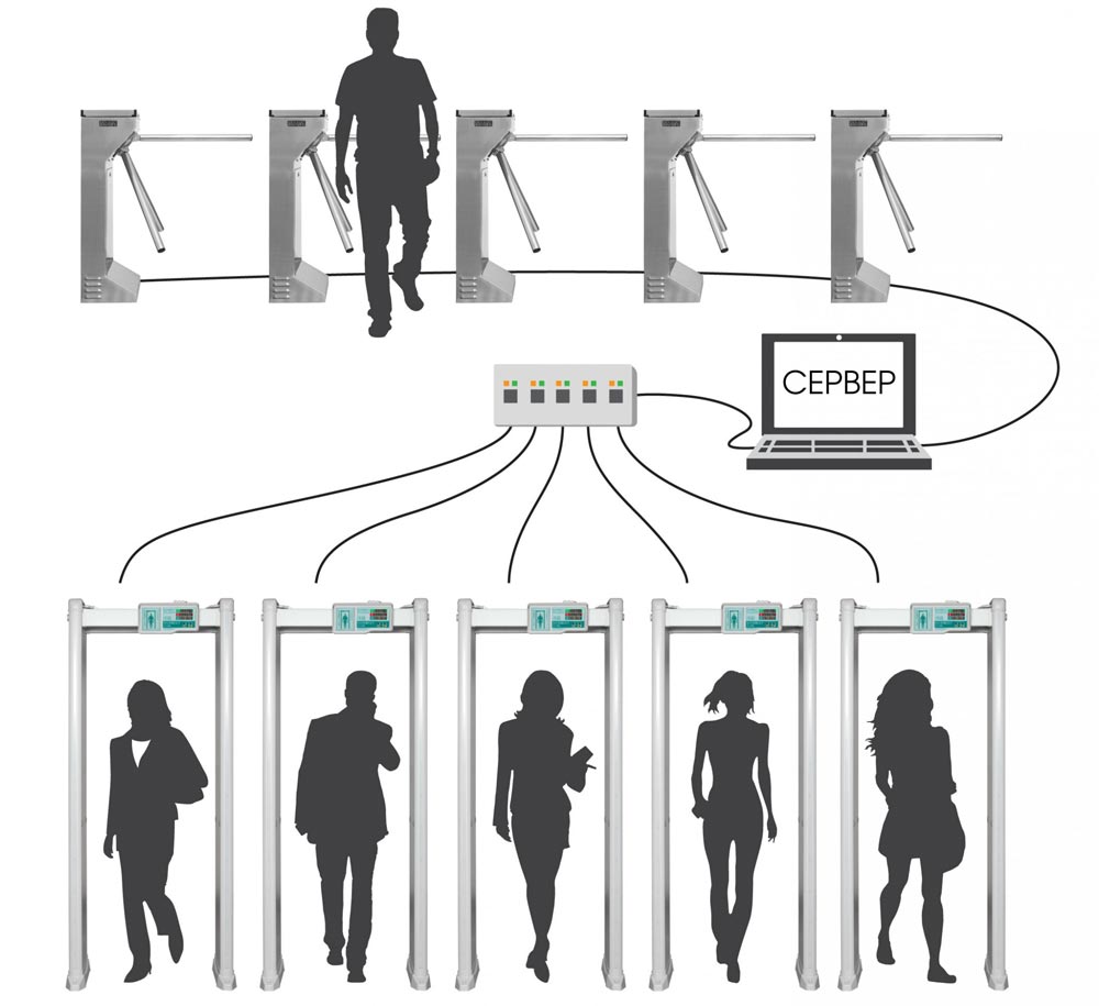 Во время прохода человека через металлодетектор с запрещенным к проносу предметом срабатывает световая и звуковая индикация, информация передается через проводное соединение на турникет (шлюзовую кабину, автоматическую дверь и т.д.), который блокирует дальнейшее движение человека. Если запрещенных к проносу предметов нет, то турникет разрешит доступ.