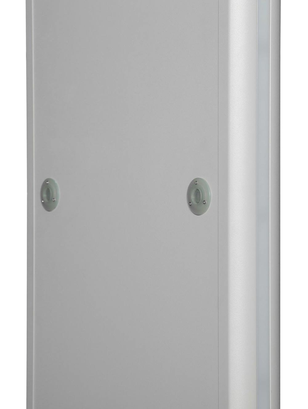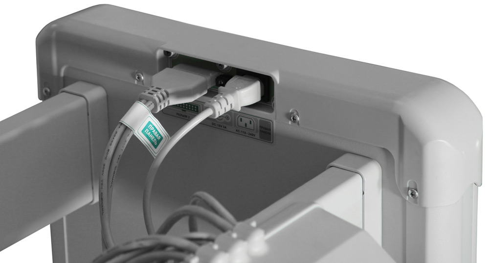 Подключения к сети возможно двумя способами (слева, сверху). Наличие «сухих контактов». Для подсчета количества проходящих людей (на вход и на выход) через металлодетектор БЛОКПОСТ Z 600 M K используется технология передачи инфракрасного сигнала за счет использования приемо-передающих ИК-датчиков. Так же, есть возможность увеличить ширину прохода до 1000 мм, оснастить металлодетектор PC Z 600 MK тепловизионной камерой БЛОКПОСТ Delta 100, для контроля температуры тела входящих людей.