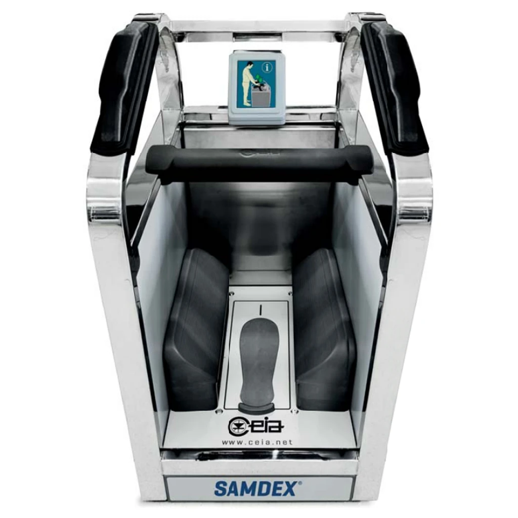 Автоматический сканер обуви CEIA SAMDEX — это стационарная система комбинированного контроля обуви, совмещающая обнаружение металлических и неметаллических (включая взрывчатые) угроз без необходимости снятия обуви. Устройство разработано для пунктов пропуска с высокой нагрузкой и полностью соответствует европейскому регламенту 2019/103 по авиационной безопасности. Технология позволяет выполнять анализ обуви всего за 4 секунды на одну обувь, значительно снижая количество ручных досмотров и ускоряя поток пассажиров.
