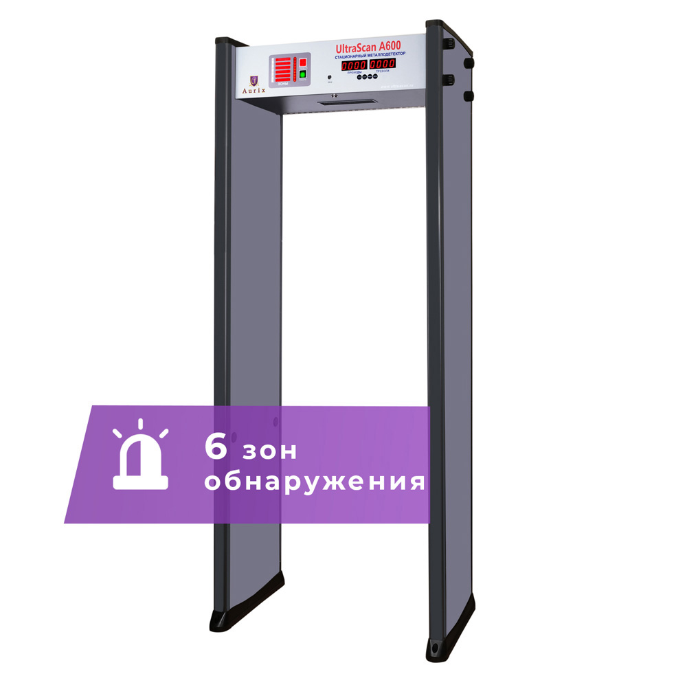 Арочный металлодетектор UltraScan A600 обеспечивает превосходное обнаружение металла. Любой металлический объект, расположенный на теле человека, обнаруживается с помощью 6 зон обнаружения и индицируется на головном блоке, указывая точное место обнаружения. Каждая зона обладает независимой возможностью обнаружения и настройки.