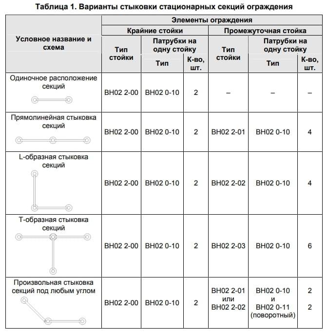 Типы стандартных секций ограждения и их габаритные размеры показаны на рисунках 1 – 7.
