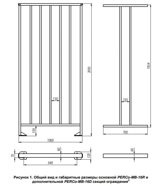 Размер дополнительной секции ограждения PERCo-MB-15R 1934×700×60 мм
