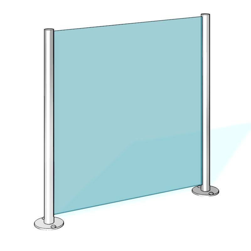 Также возможен выбор нижнего зазора между полом и стеклом: 40 мм или 300 мм (цена ограждения при обоих зазорах одинакова).