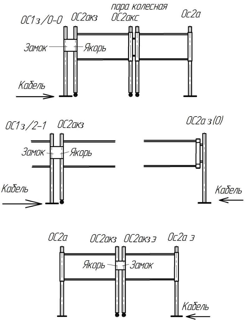 Стойка ОС1з/2-1 с электромагнитным замком на ней (с двумя муфтами для горизонтальных перемычек)