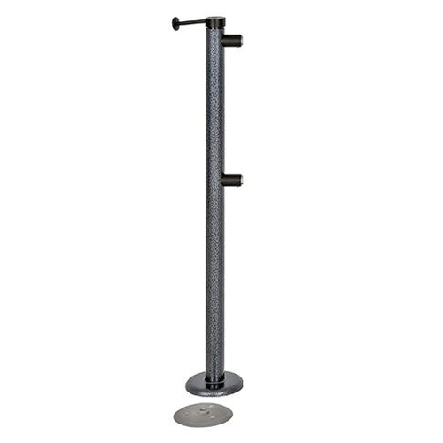 Быстросъемное ограждение ОБ1 состоит из двух стальных крашенных стоек с унифицированными крепежными узлами (муфтами), двух специальных фланцев и двух хромированных горизонтальных перемычек. Специальные фланцы тремя отверстиями диаметром 11мм крепятся анкерами к полу. Стойки устанавливаются на специальные фланцы и крепятся на них длинными винтами, проходящими через всю стойку и снабженными вверху складывающимися ручками для затяжки винтов.