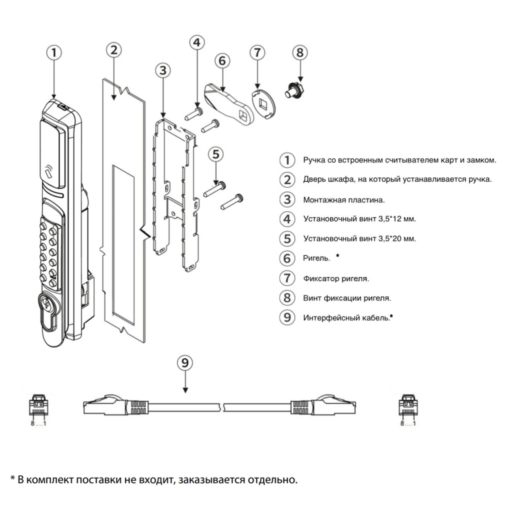 Ручка разблокируется, если в памяти будет найдена запись, содержащая такой же номер идентификатора. - Проход по карте или коду