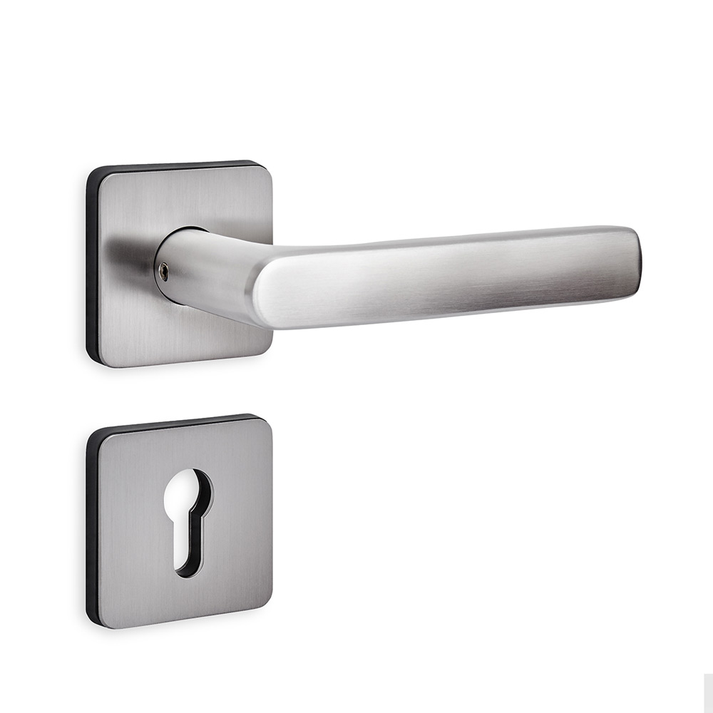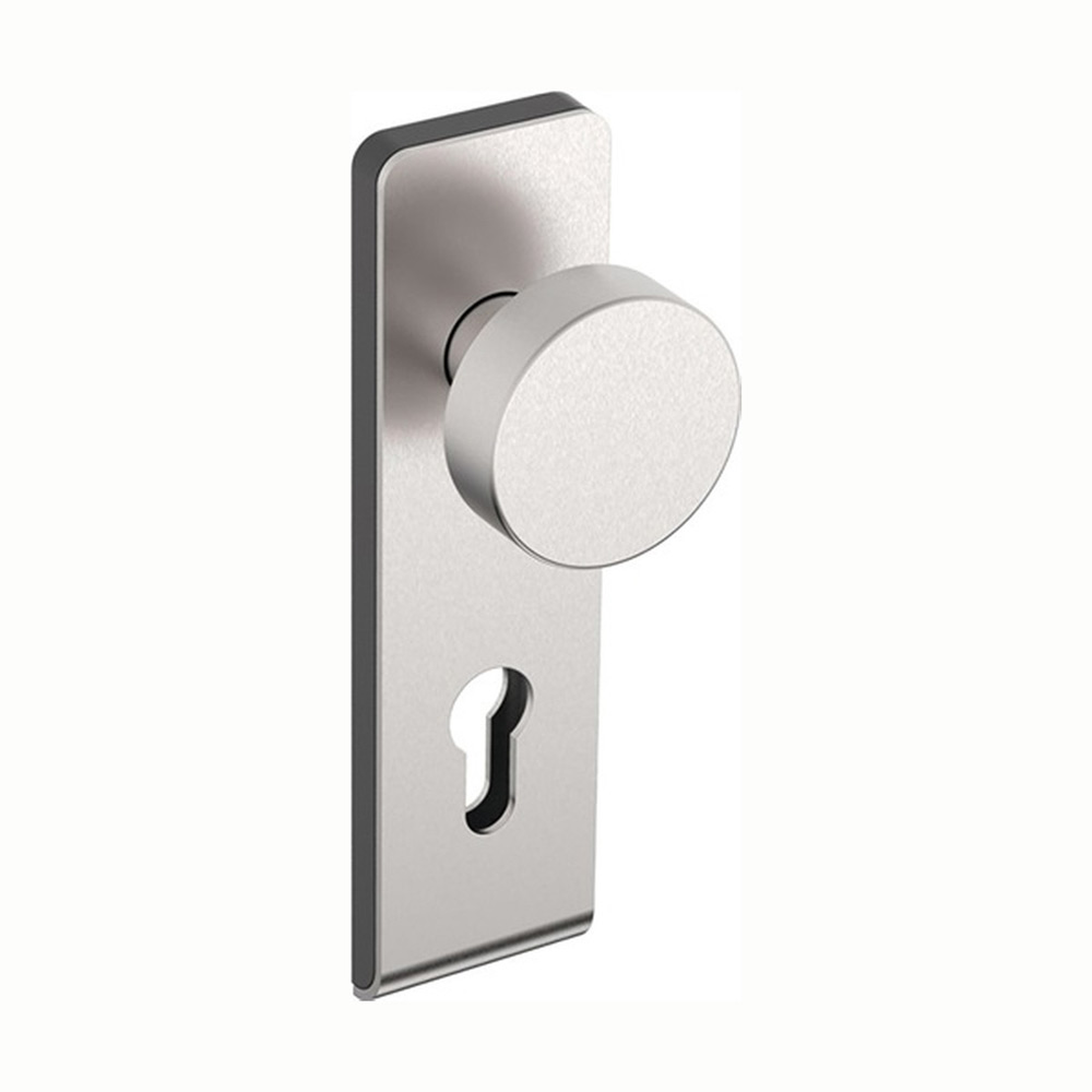 Основной комплект фурнитуры состоит из нажимной ручки с розеткой/накладкой, накладок на цилиндр и шпинделя квадратного сечения, которые могут гибко комбинироваться в различных сочетаниях.