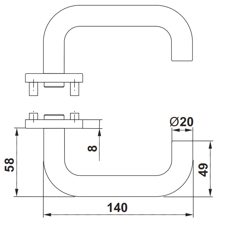 Полукомплекты поставляются с правосторонней или левосторонней пружиной для возврата нажимной ручки в горизонтальное положение.