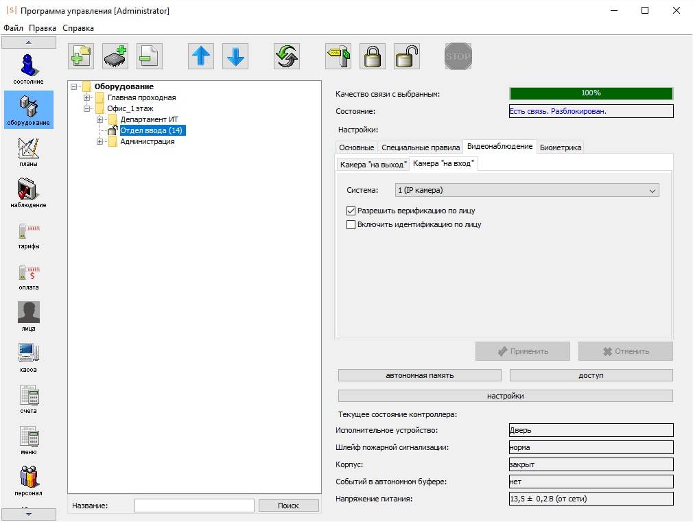 • «жестким»: после идентификации по основному признаку система производит сравнение изображения, полученного с камеры с фотографией сотрудника. В случае, если лицо не распознано или сотрудник не появился в кадре в течение 5 сек, система запрещает доступ.