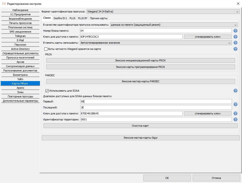 В рамках Sigur, на данный момент, в качестве идентификаторов для работы с офлайн-замками используются карты Mifare Classic. Первоначально замки конфигурируются через ПО производителя замка. Создание пользователей, рабочих графиков, назначение правил доступа - в ПО Sigur.