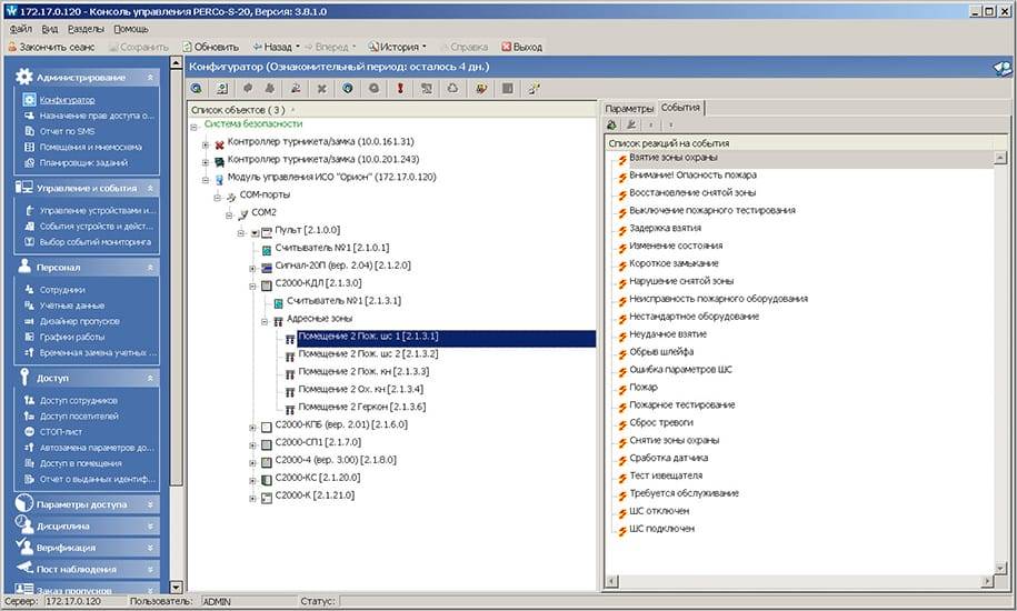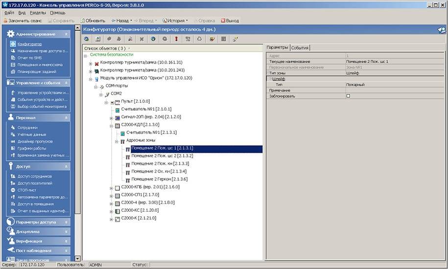 • PERCo-SM01 «Администратор» - для занесения и отображения конфигурации приборов ИСО «Орион», объединенных пультом управления C2000 или C2000M, во многоуровневом списке объектов системы безопасности.