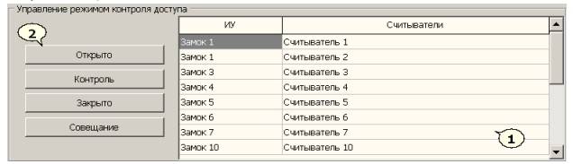• оператору устанавливать режим контроля доступа через исполнительные устройства, подключенные к контроллерам первого и второго уровней;