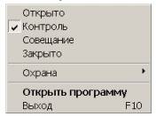 Примечание: В случае сворачивания окна модуля, в области уведомлений рядом с часами отображается значок: . Нажмите на значок для открытия окна.