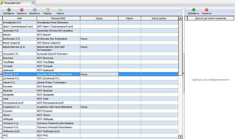 Справочник клиентов позволяет вести полный учет всех категорий посетителей спорткомплекса: