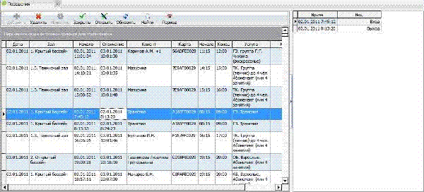 Журнал Посещений предназначен для создания и ведения перечня посещений клиентами спортивного комплекса: