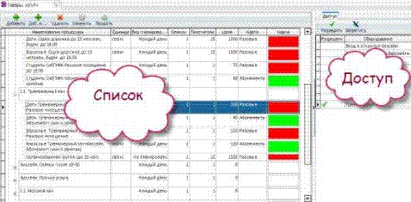 • По услуге - проход разрешен к услуге, которая предоставляется дополнительно к основным услугам комплекса (настройка в меню “Услуги”)