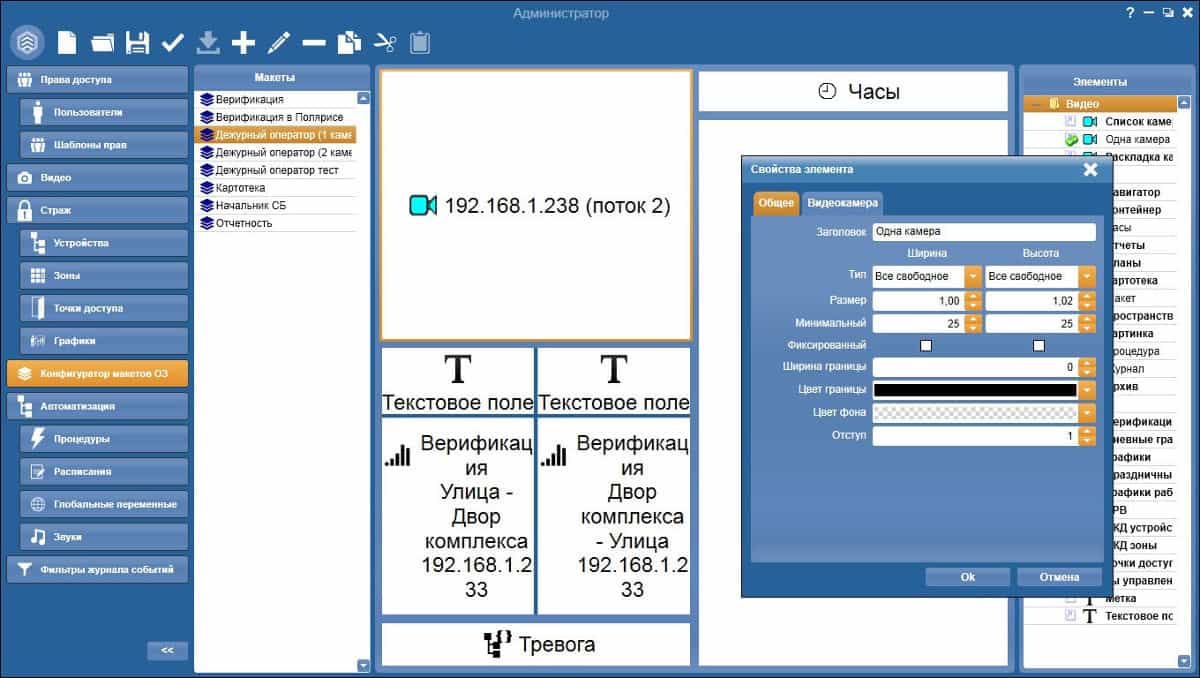 Входящий в состав Администратора STRAZH редактор интерфейсов позволяет создавать индивидуальные интерфейсы для конечных пользователей.