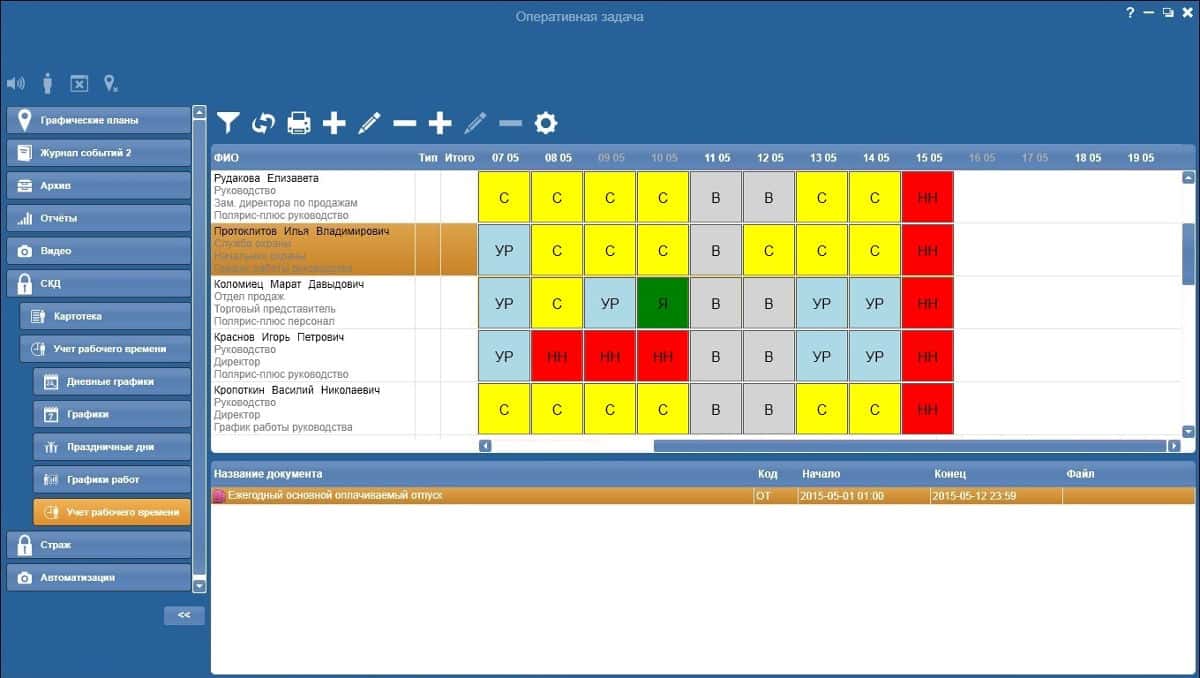 • Определять различные графики работ сотрудников (недельные, сменные, индивидуальные);