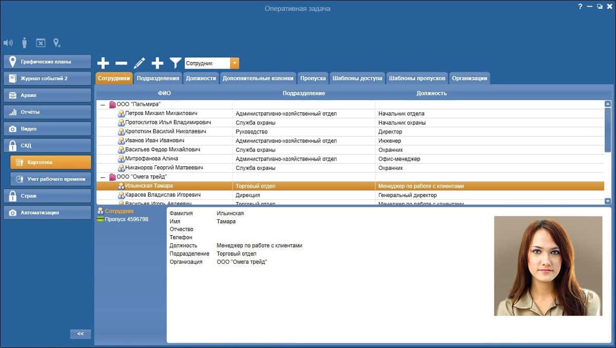 Посредством интеграции с видеонаблюдением фото и видео верификация позволяет организовывать АРМ оператора для контроля за проходами пользователей и отслеживания использования чужих пропусков.