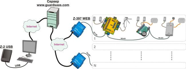 2. Конвертор Z-397 Web. Обеспечивает связь контроллеров с сервисом GuardSaaS.com