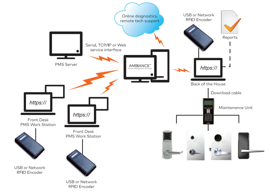 Веб-интерфейс, управление с помощью настраиваемых разрешений пользователя и защищенный доступ к системе позволяют пользователям Ambiance управлять уровнями гостевого доступа через собственную учетную запись или через систему управления собственностью (PMS).