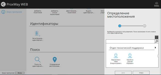 • поиска сотрудника по идентификатору и определения его местоположения.
