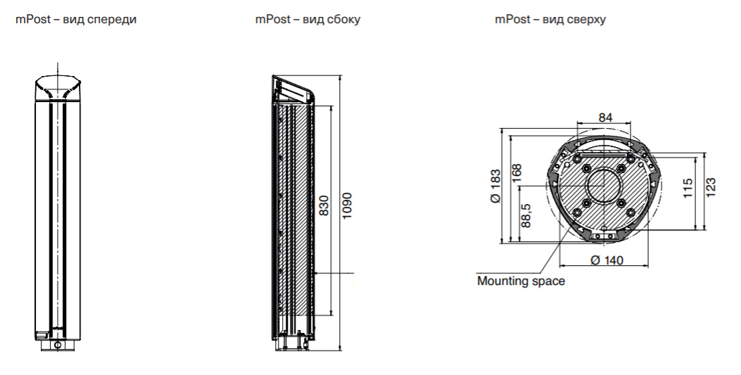 • Размеры (Д x Ш x В): 178 x 168 x 1090 мм