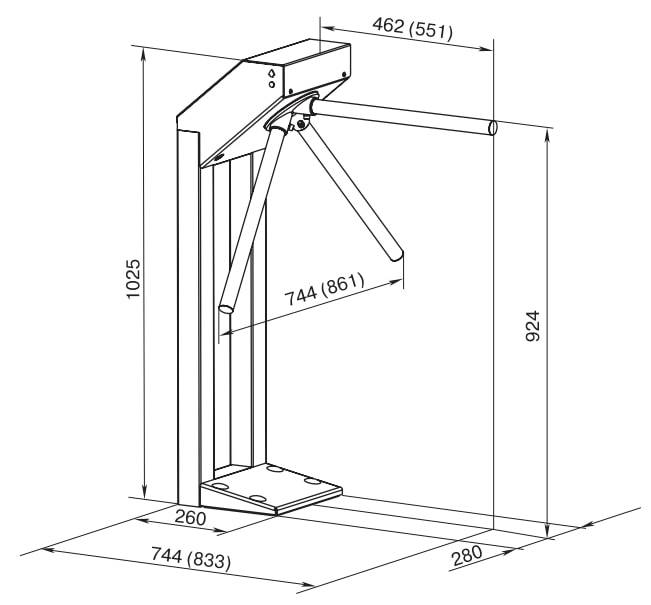 - С планками PERCo-AS-04, PERCo-AA-04: 861x833 x1025 мм