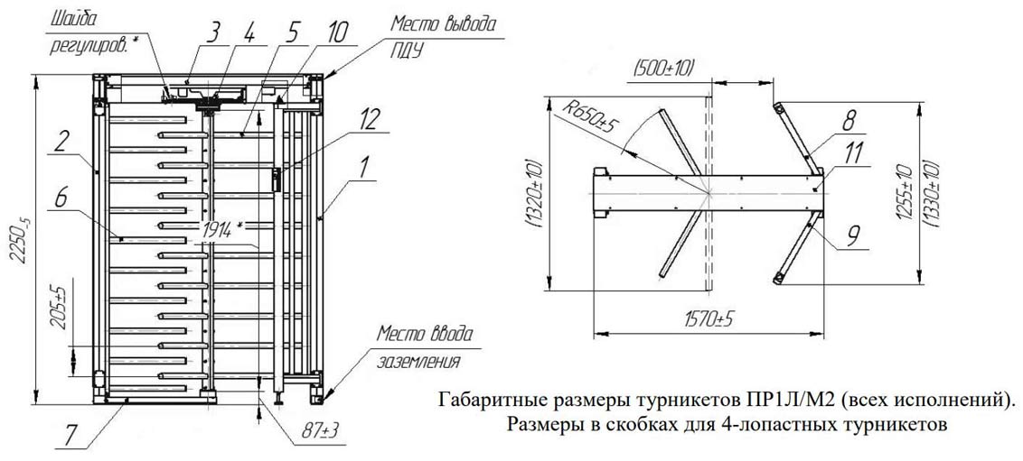 • Масса 3-лопастного (4-лопастного) турникета, кг: 206 (215)