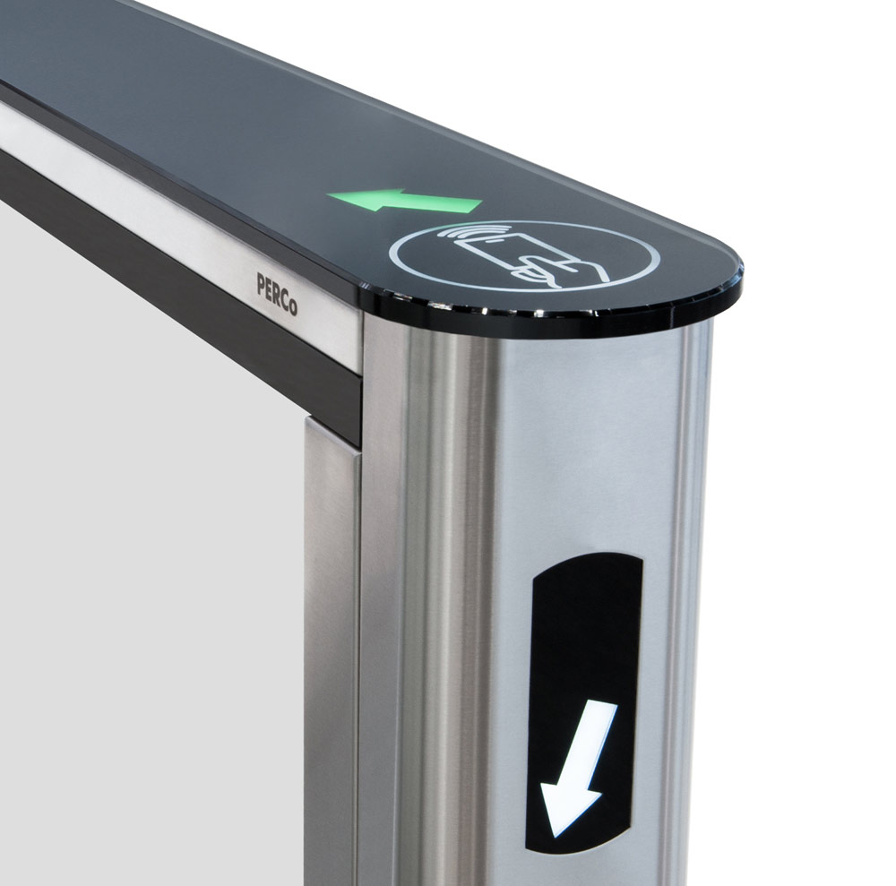 Индикация направления прохода расположена на торцах корпусов стоек турникета. Индикация состояния турникета (открыто/закрыто) размещена на крышках стоек.