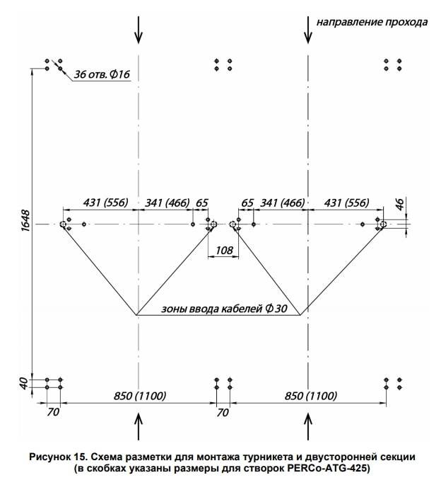 - со створкой PERCo-ATG-300, PERCo-ATG-300H: 650