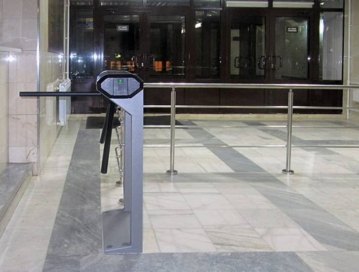 Встроенный замок механической разблокировки позволяет открыть турникет с помощью ключа, обеспечив свободное вращение преграждающих планок в обоих направлениях.