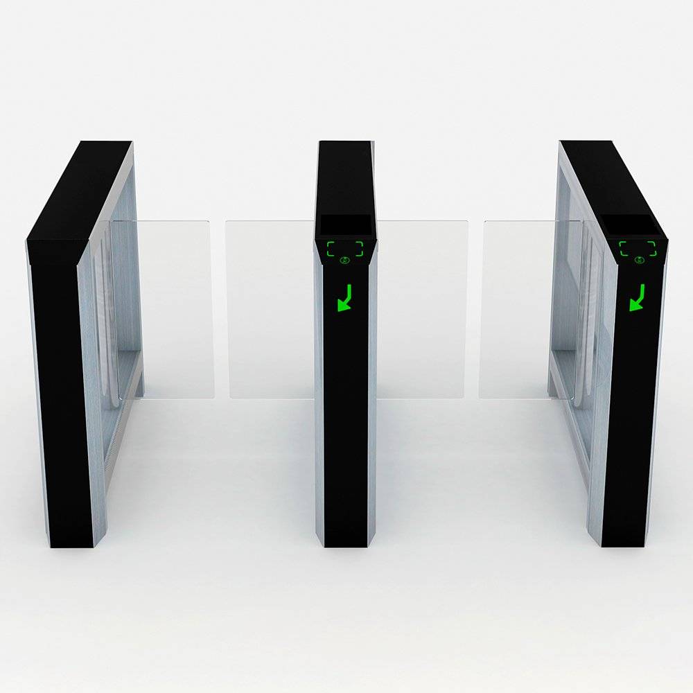 Моторизованные барьеры представляют собой корпуса, формирующие проход и оснащенные системой сенсоров, и интегрированными поворотными моторизованными створками. Створки могут быть нормально открытыми или нормально закрытыми (опционально). Возможно двухстороннее направление прохода. Десять встроенных оптических сенсоров на каждый проход надежно защитят вход от несанкционированного доступа. На передней стойке корпуса размещена скошенная пластина, предназначенная для размещения считывателя или индикации.