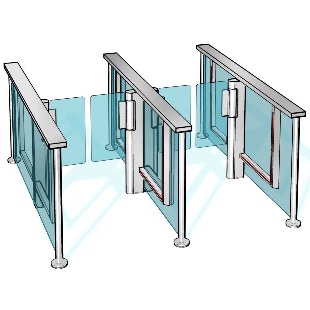 Турникеты полностью выполнены из стекла и подходят для установки на тех объектах, к которым предъявляются высокие требования по дизайну (максимально возможная прозрачность и филигранность). Барьер предназначен для физического разделения пространства на зоны. Как правило, сенсорный барьер работает в составе системы контроля доступом (СКД). Пользователь, проходя через барьер, переходит из первой зоны (например, снаружи) во вторую зону (например, внутрь). Целью является ситуация, когда при помощи одного разрешения на проход в защищаемую зону может пройти только один человек. Для этого разделения и применяется сенсорный барьер. Часто контроль с помощью СКД необходим только для входа в защищаемую зону. Тогда для выхода может использоваться кнопка.