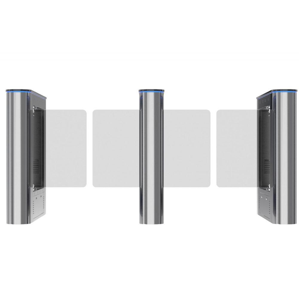 Турникет РСП 600 — это преграждающая конструкция, имеющая створки, которые закреплены на вертикальных валиках и могут распахиваться как в одну сторону, так и в другую. Распашной турникет оборудован функцией «Антипаника». Эта функция автоматически освобождает проход в экстренных случаях или при сбое электропитания, также она может быть активирована с пульта ДУ.