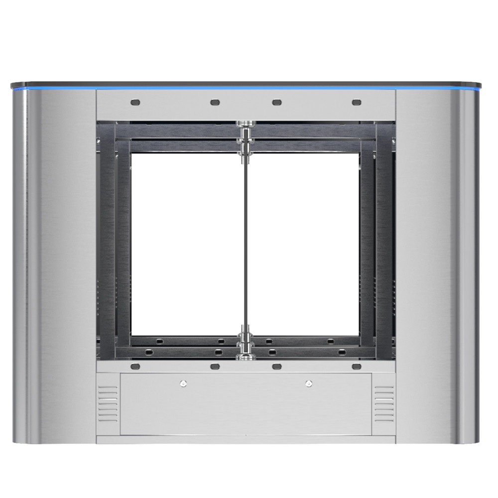 Распашной РСП 600 предназначен для использования внутри помещения. Также его можно использовать на улице, создав условия непрямого воздействия атмосферных осадков и при рекомендуемой температуре воздуха от -28 до +60°С. Турникет изготовлен из нержавеющей стали AISI 304, а створки ограждения — из закалённого стекла.