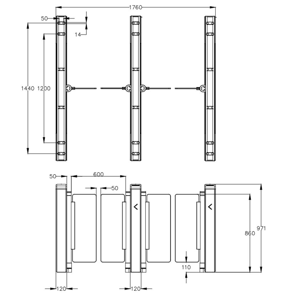- AV.SG.6690-S-1100: боковой модуль Slave, ширина прохода 1100мм, размеры (ДхШхВ): 1600×120×971мм.