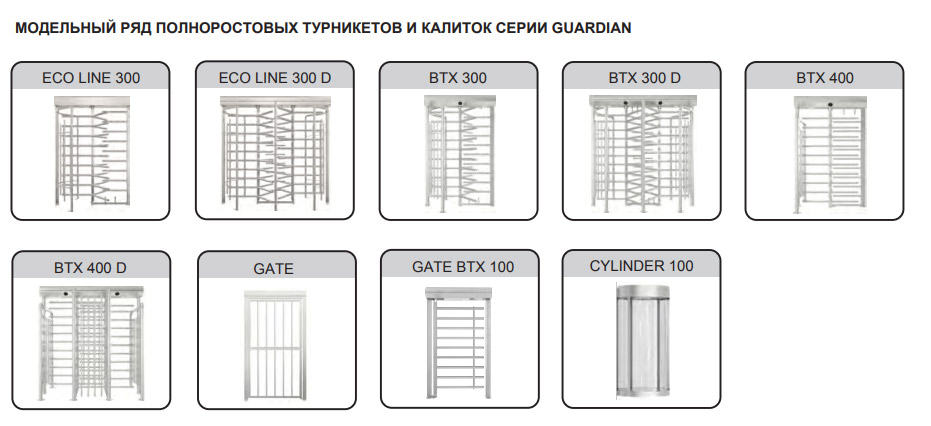 - Освещение прохода - стандартная опция для всех типов полноростовых турникетов GUARDIAN.