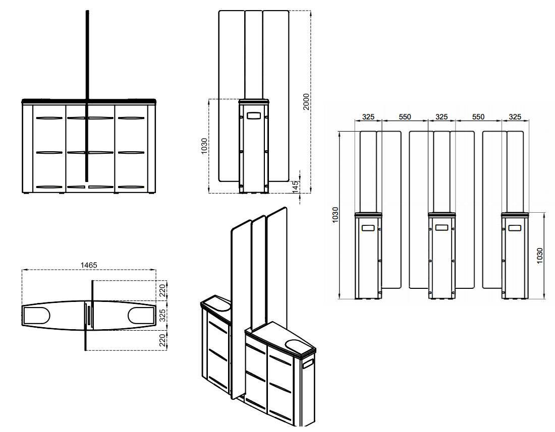 • Дополнительные аксессуары: Накладки из закаленного стекла, пульт дистанционного управления, интерфейсный блок RS232, RS 485 и LAN, встраиваемый механический счетчик проходов, система аудиосообщения, датчик тревоги, монтажный комплект сторонних билетных считывателей и кардридеров.