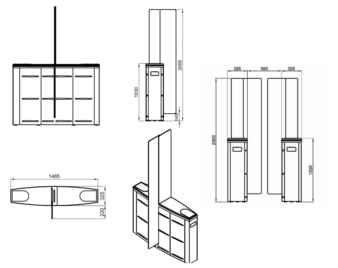 • Створки: Линия прохода состоит из двух односторонних или двухсторонних блоков с 12-миллиметровыми ударопрочными закаленными стеклянными створками (опционально – створки из поликарбоната)