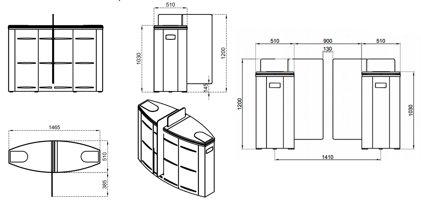 • Дополнительные аксессуары: Накладки из закаленного стекла, пульт дистанционного управления, интерфейсный блок RS232, RS 485 и LAN, встраиваемый механический счетчик проходов, система аудиосообщения, датчик тревоги, монтажный комплект сторонних билетных считывателей и кардридеров.