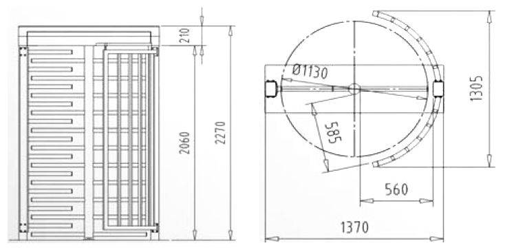 9. Ограждение заблокированного сегмента для варианта турникета с изогнутыми штангами