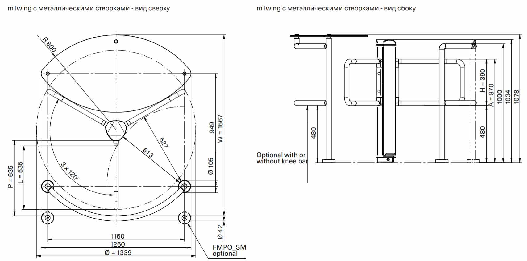 • FMTW_MU - Полуростовой роторный турникет FlowMotion® mTwing для металлических створок (без створок)