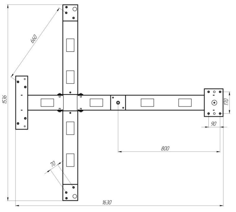 • Габаритные размеры рамы монтажной в сборе (см. рис. 1): (длина × ширина × высота), мм: 1630×1536×65